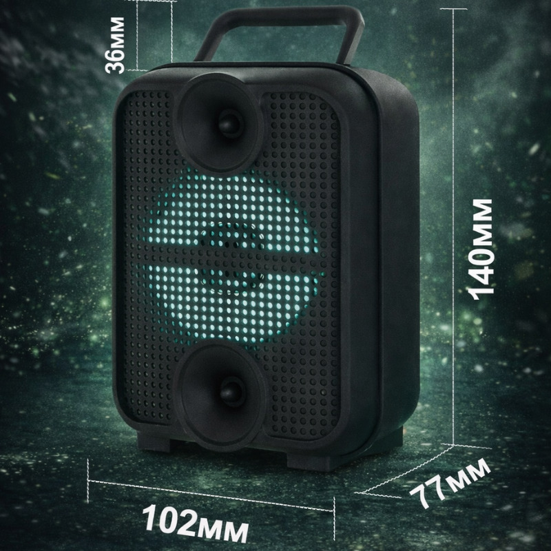 Կրելի Bluetooth բարձրախոսը LED լուսավորմամբ նախատեսված է երաժշտություն լսելու համար տանը, ճանապարհորդությունների ընթացքում և բացօթյա պայմաններում։ Կոմպակտ կորպուսը և տեղափոխման համար նախատեսված բռնակը թույլ են տալիս հեշտությամբ վերցնել բարձրախոսը հյուրասենյակ, ննջասենյակ, զբոսանքի, պիկնիկի կամ ընկերների հետ հանգստի ժամանակ։