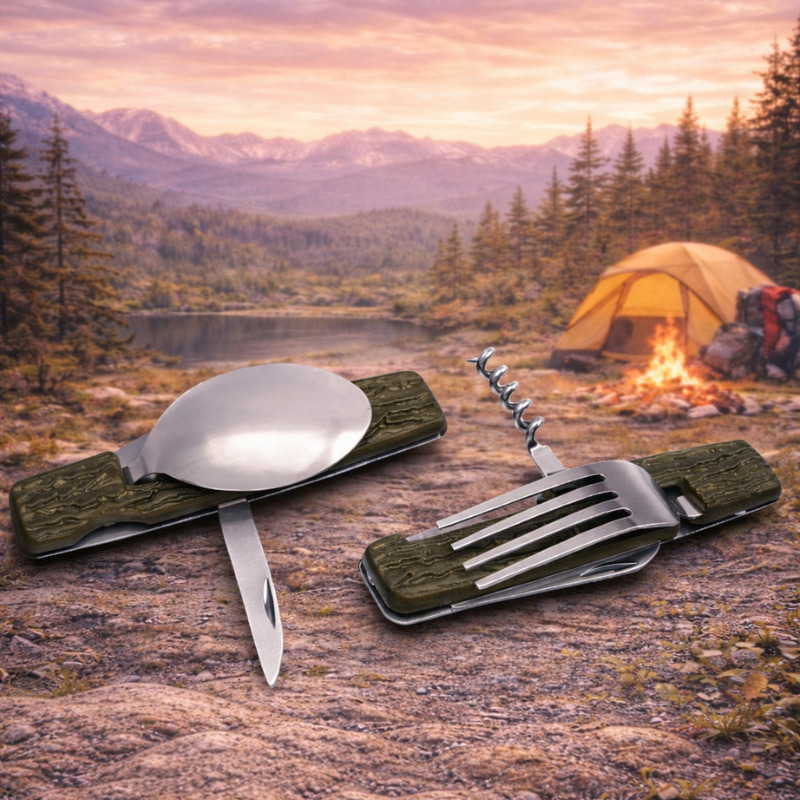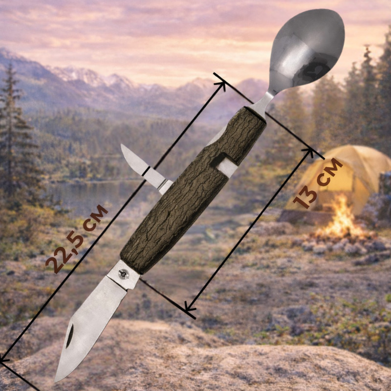 Տուրիստական բազմագործիք 6-ը 1-ում նախատեսված է արշավների, քեմփինգի, պիկնիկների, ձկնորսության և ճանապարհորդությունների համար։ Հավաքածուն բաժանվում է երկու մասի՝ ստանալով հարմար համադրություններ՝ պատառաքաղ + գդալ կամ պատառաքաղ + դանակ։ Այս լուծումը դարձնում է սնվելը բնության գրկում ավելի հարմարավետ։