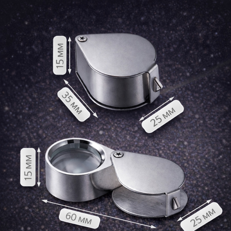 Ծալովի ոսկերչական լուպան 10×21 մմ նախատեսված է մանր առարկաները մանրամասն դիտելու համար։