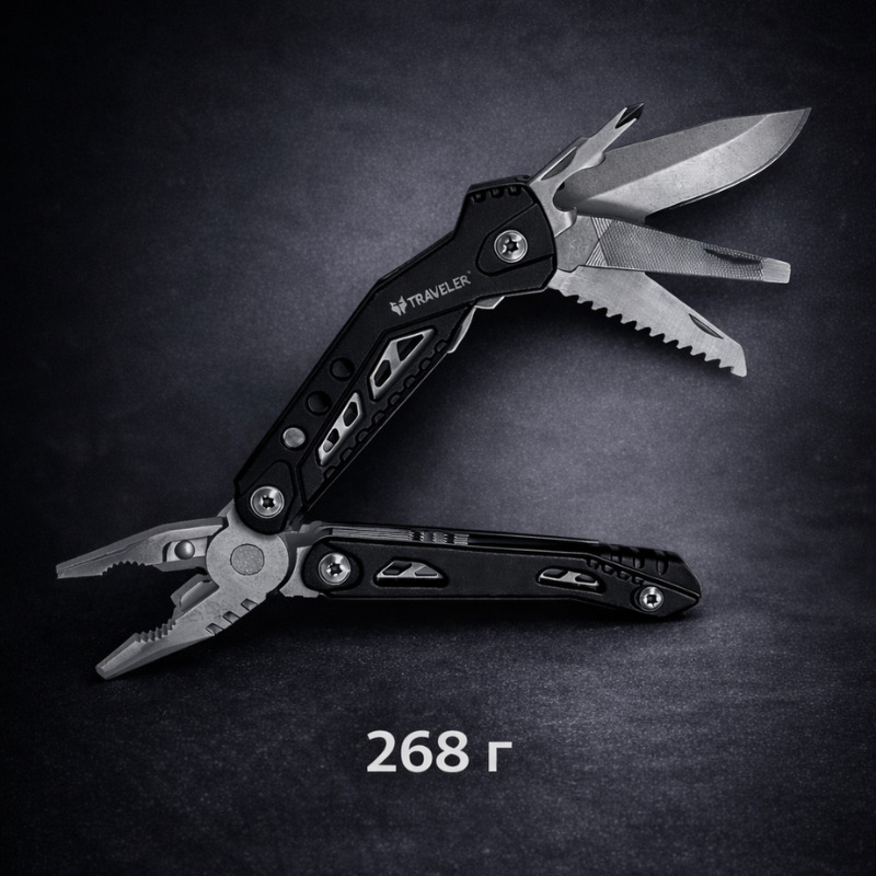 Մուլտիթուլը պատրաստված է A2 դասի ամուր պողպատից, ինչը ապահովում է բարձր դիմացկունություն և երկարատև օգտագործում։ Կոմպլեկտում առկա են պլասկոգուբցի, կտրիչներ, ուղիղ դանակ, փայտի սղոց, շշաբացիչ, խաչաձև բացիչ, լարերի մաքրիչ (ստրիպպեր), կայծքար, սուլիչ, նապիլնիկ և 9 բիթով պտուտակահանի գլխիկների հավաքածու։ Այս գործիքների համադրությունը դարձնում է մուլտիթուլը ունիվերսալ օգնական տարբեր իրավիճակներում։