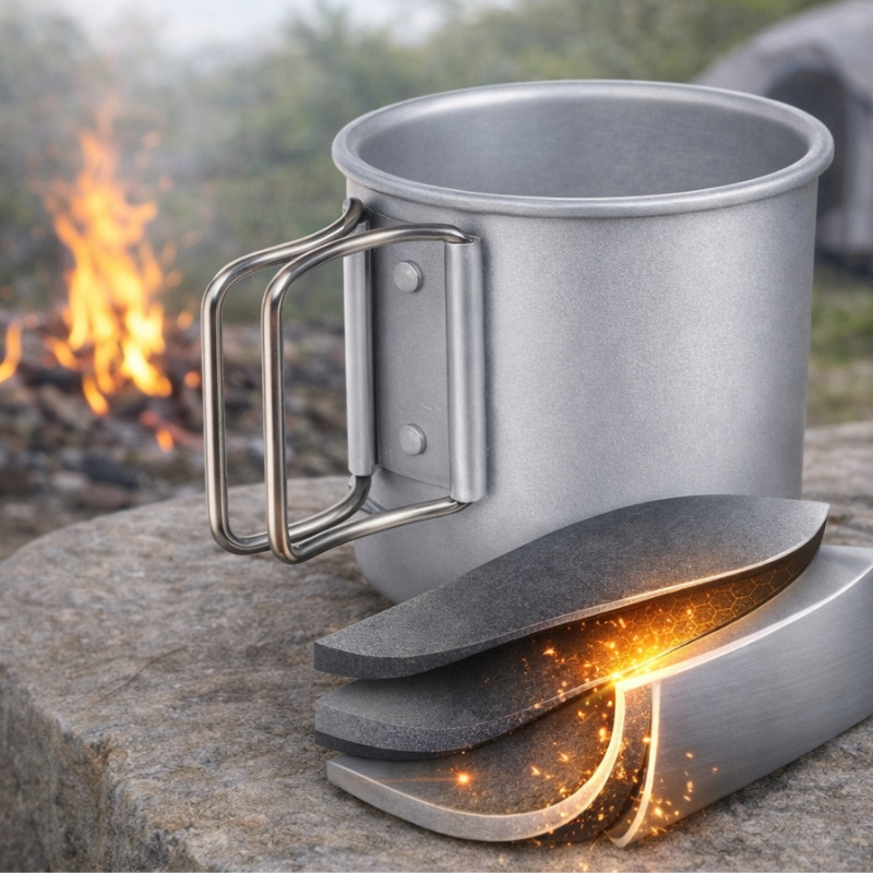 Բաժակը ունի ծալվող բռնակներ, որոնք հեշտացնում են պահեստավորումը և թույլ են տալիս այն հեշտությամբ տեղավորել ուսապարկի կամ պայուսակի մեջ։