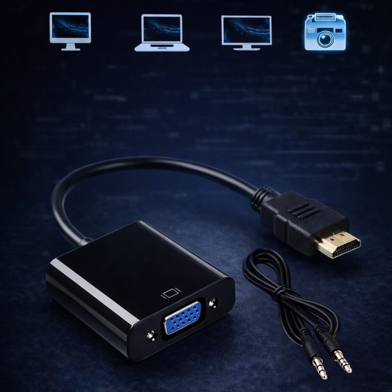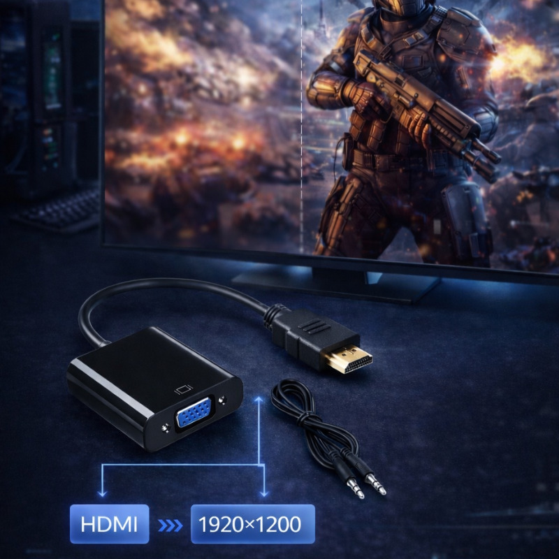 Միակողմանի HDMI → VGA փոխարկիչը նախատեսված է HDMI ելքով սարքերը VGA մուտքով մոնիտորների կամ պրոյեկտորների միացնելու համար։ Հարմար է համակարգիչների, նոթբուքերի, TV տուփերի, արբանյակային ռեսիվերների և այլ HDMI սարքերի համար։ Փոխարկիչը թվային HDMI ազդանշանը վերածում է անալոգային VGA ազդանշանի։