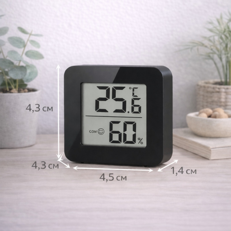 Սենյակային ջերմաչափ-խոնավաչափը նախատեսված է սենյակում ջերմաստիճանի և օդի խոնավության վերահսկման համար։ Սարքը օգնում է պահպանել հարմարավետ միկրոկլիմա տանը, գրասենյակում կամ մանկական սենյակում։